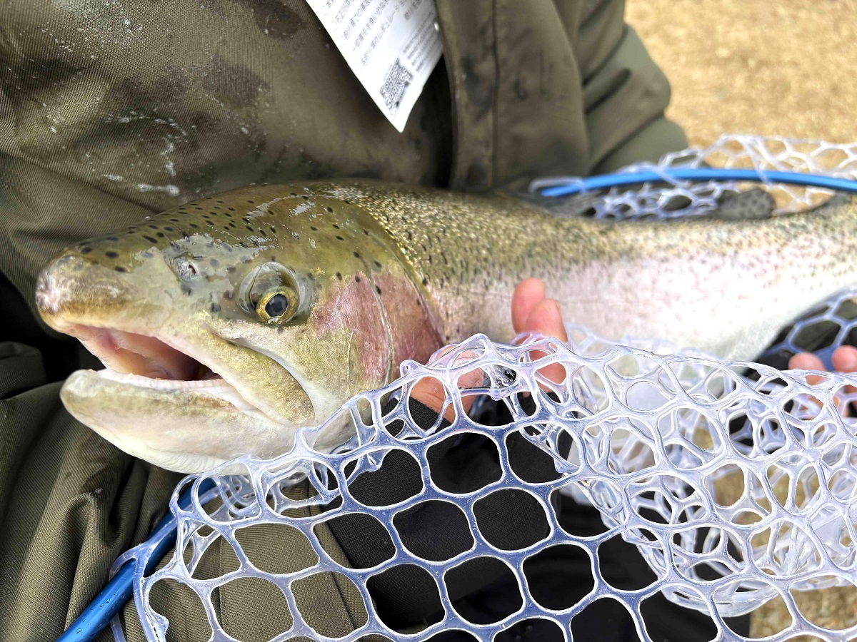 郡山市からお越しの常連さん、Sさんに撮影協力頂きました。太っちょのスチールヘッド。サードポンドでGETです。話を聞くと、やはり良型はボトムなのかも知れません。みなさんも狙ってみてください♪