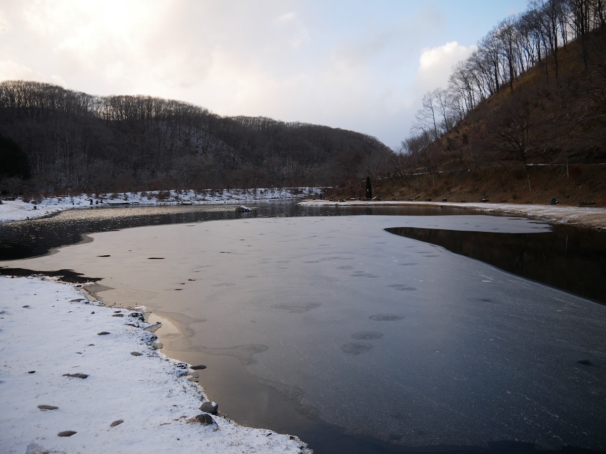 現在、寒波の影響により、ファーストポンドの一部が凍結しています。今回の寒波は強く、長く居座る予報です。自然のことなのではっきりした事は言えませんが、この様な状況もあり得ることをご理解の上、ご来場くださいませ。