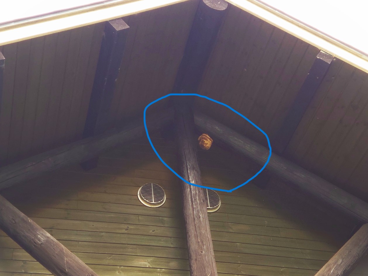レストハウス下屋根に蜂の巣。