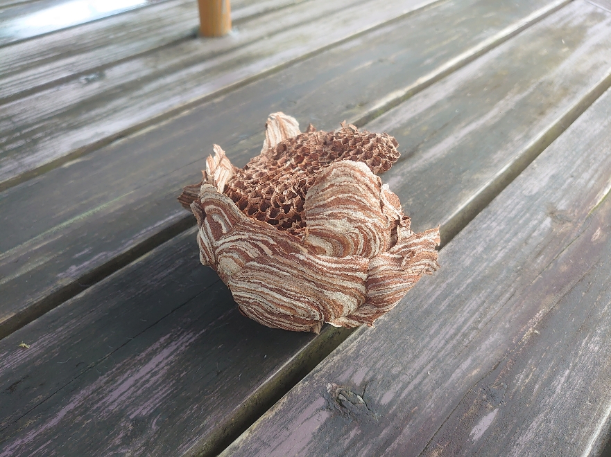 スズメバチが下屋根に巣をつくり一回落としたのですがまたすぐに巣をつくていたので大きくなる前に撃破しました。最強スプレーを活用しての完全勝利となりました。