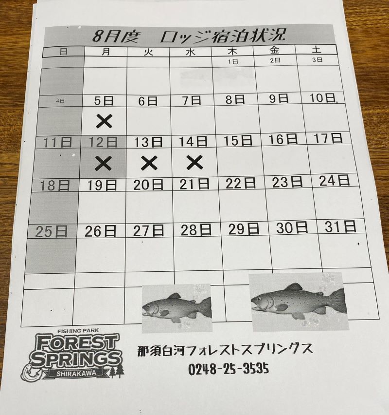 シャローエリア ビックワン2024釣り大会を8/25日曜日に開催致します。参加資格はシャローエリア規定の女性、小学性6年生以下の男女。ルアー、フライ、大会ルール厳守。エントリー券は無料で別途ライセンス券は必要。競技基準は大物1本勝負、キープは規定通り10本までOK(キープはリリース不可)。大会時間は8:00〜12:00までの4時間となります。検量時間は11: 00〜12:00まで5〜10分後 表彰式の流れとなります。参加者は予約制、25人で予約終了です。まだまだ空きはありますので予約の希望の方はTELをお待ちしています。0248-25-3535
