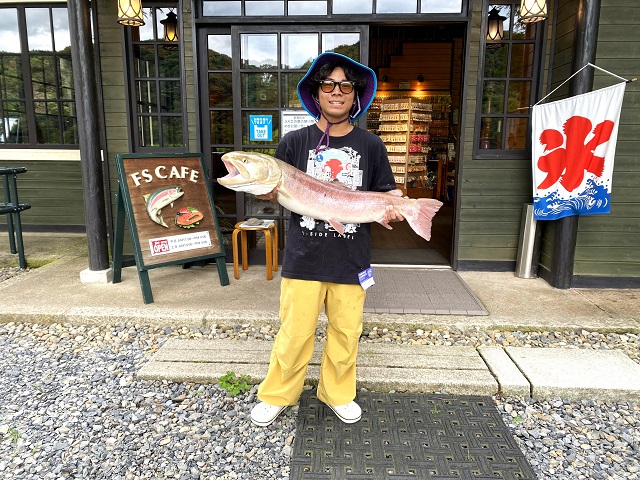 5〜6人のグループで来場されていた男性が、やりました!セカンドポンドのインレットにて、なんとー!96cmのイトウを釣り上げました。あと4cmで1m。大迫力でした。
