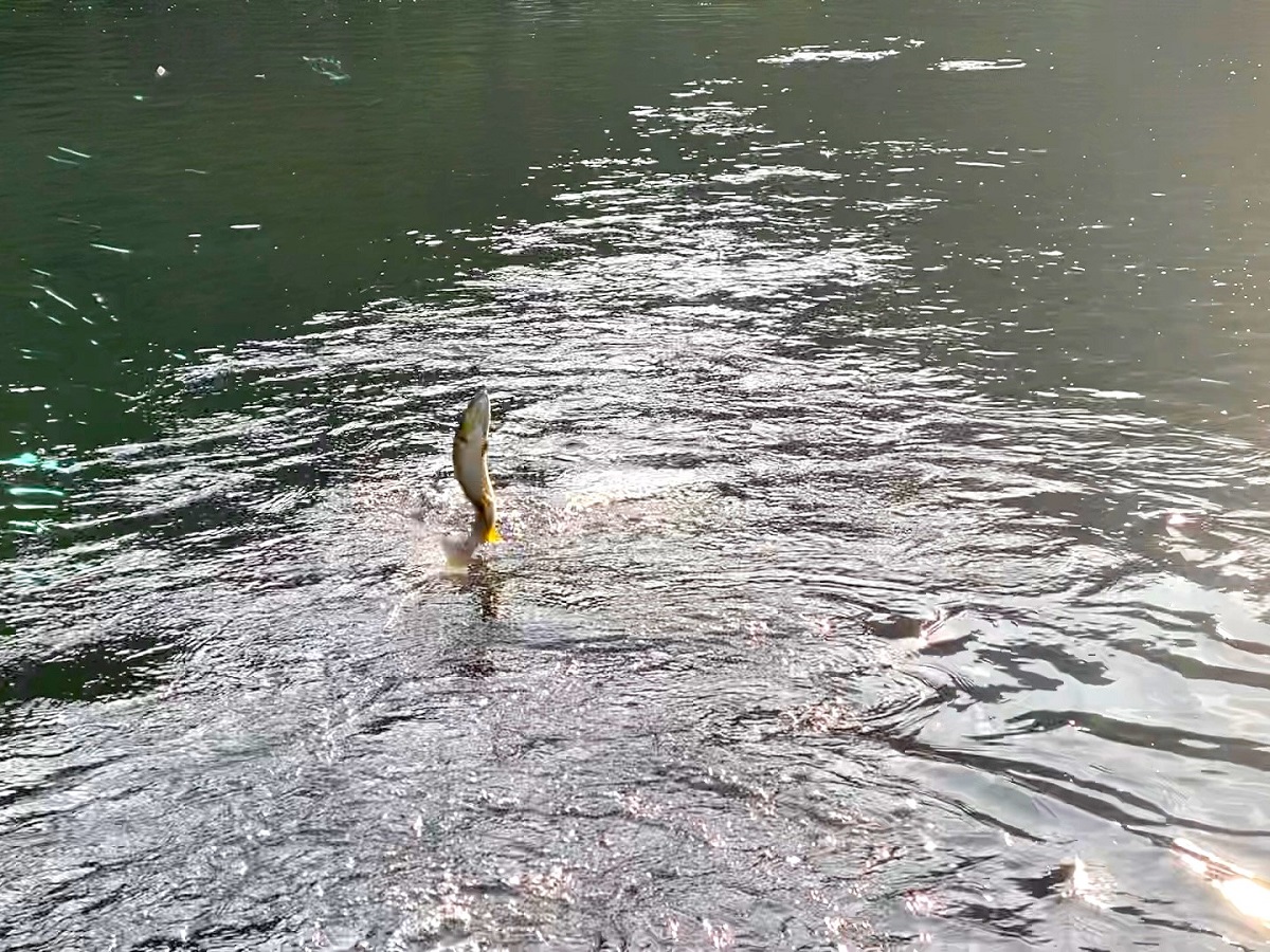 今、マイブームである「魚のライズシーン」を、シリーズ化することを勝手に決めました。スマホでの撮影ですので、クオリティは求めないようお願い致します。今回のライズタイトルは『塩焼きのポーズ』です。注)魚の大きさは塩焼きサイズではございません。ここは大事なところです!