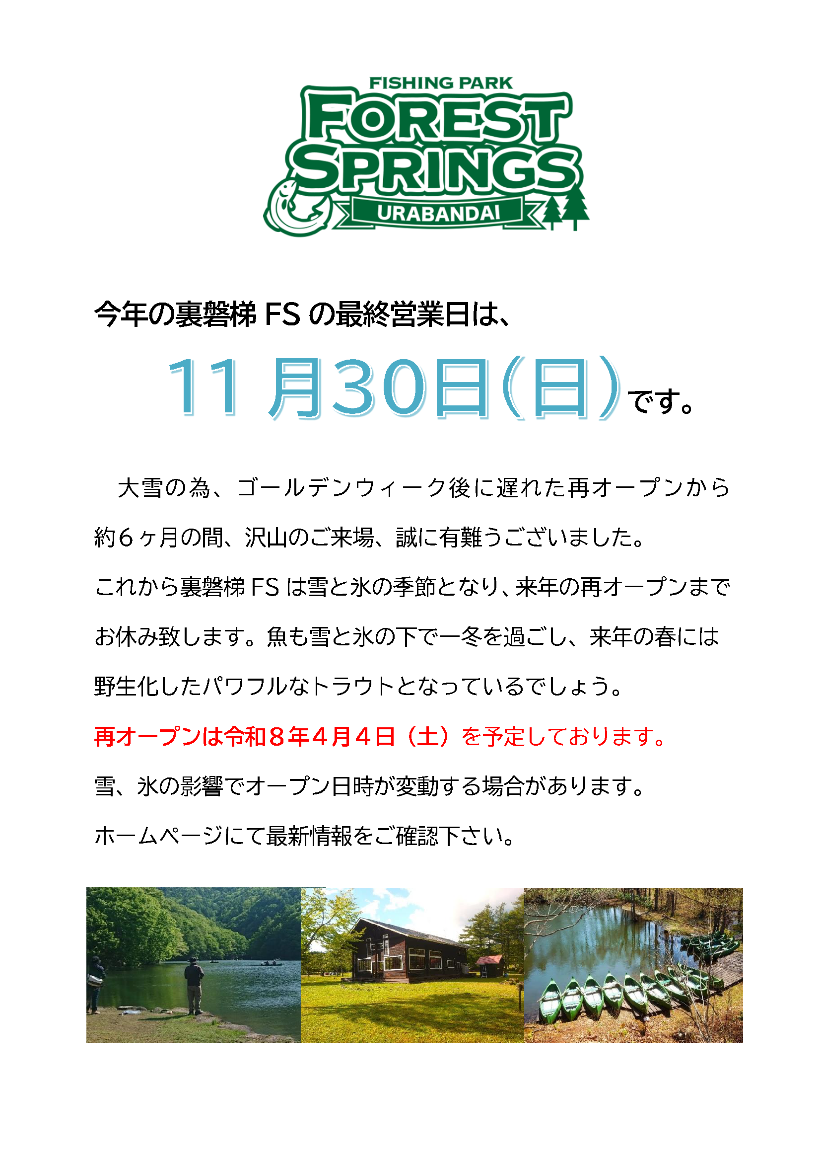 裏磐梯フォレストスプリングス もうすぐ 冬期クローズのご案内について