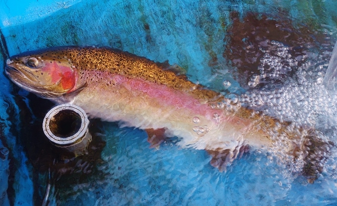 ルアーマンさん体高の立派なスチールヘッドトラウトを釣られていました。3号池。良型が釣れてまーすよ、引きの強くトルクの引きを体感してください。写真の撮影協力ありがとうございました。